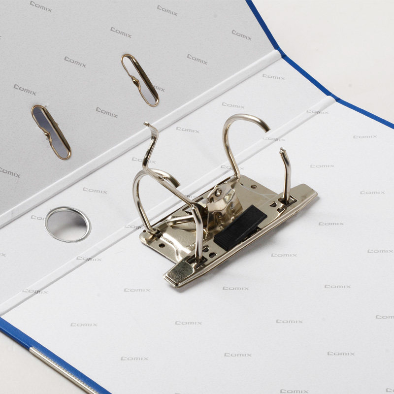 这个貌似叫装订条?中间可以掰开,把纸打好孔放进去后,再合上。封面和封底有配套的透明塑料片,还挺厚的,能起到保护作用。